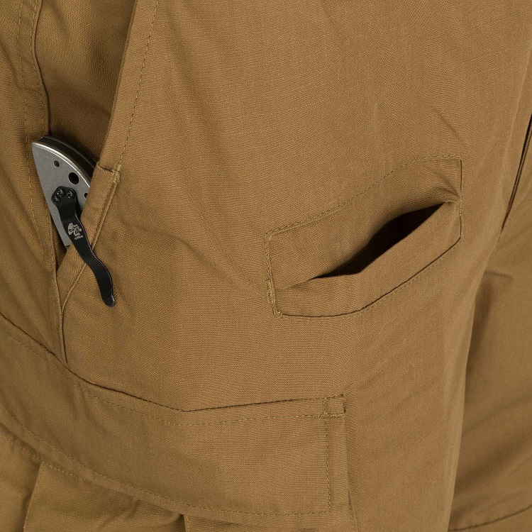 Брюки BDU MK2 представляют собой классическую сборку с семью карманами: два классических утопленных на бедрах с усилением по краям, два задних кармана на липучке, два больших вместительных кармана на пуговицах и один дополнительный карман для смартфона, расположенный на передней части брюк.