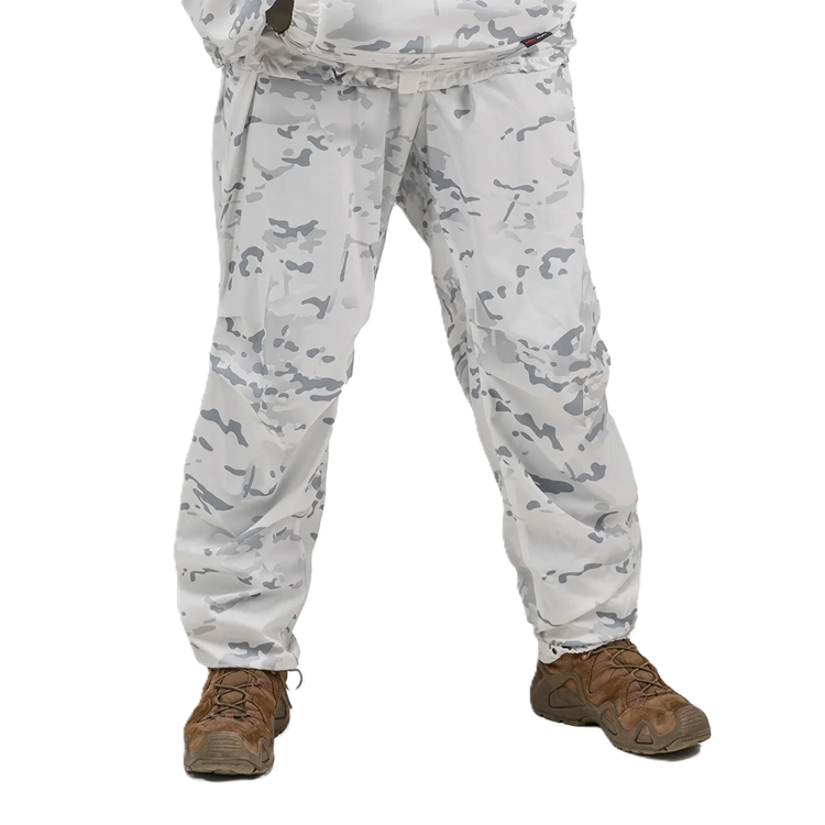 Маскировочные брюки OVERWHITES созданы для использования в зимнее время года на местности, покрытой снегом. Дышащие ветрозащитные свойства обеспечивают хорошую защиту от ветра, снега и дождя, что делает эту модель отличным легким защитным слоем. Достаточно просторный, чтобы надеть его поверх среднего слоя или снаряжения.Основными преимуществами являются малый вес, небольшой габарит и простота надевания и снимания. Брюки OVERWHITES помогают вам слиться со снегом.Прочная полиэфирная ткань в расцветке Multicam Alpine, которая устойчива к истиранию, блокирует ветер и обработана прочным водостойким покрытием.