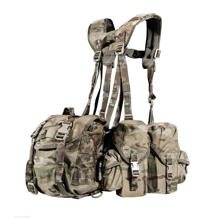 - Дополнительное снаряжение пристёгивается к плечевым поддерживающим лямкам креплением системы PALS / МОLLЕ или крюками-зажимами (клипсами) системы АLIСЕ