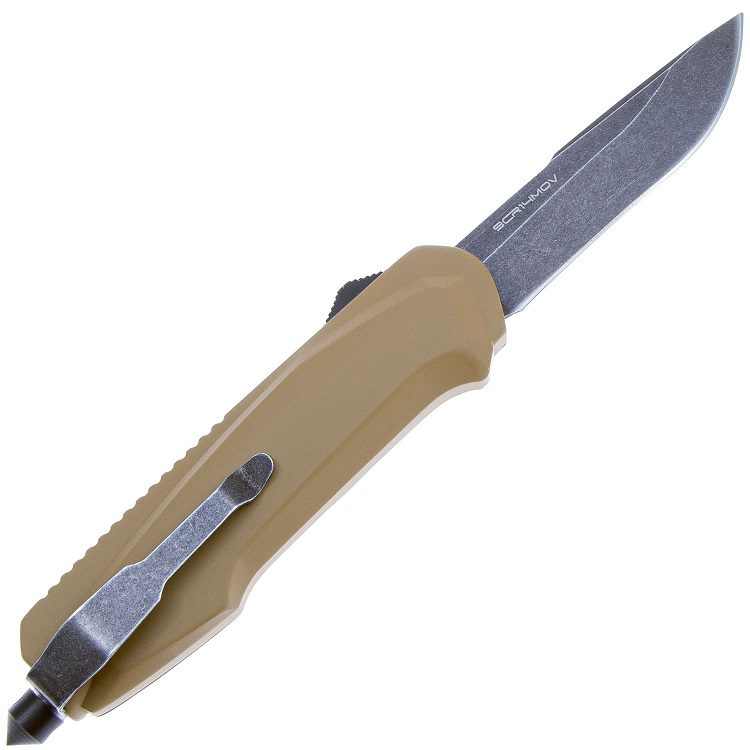 Рукоять выполнена из стали. Достаточно популярный материал для изготовления рукоятей. Он простой и дешевый в производстве, при этом хорошо сопротивляется коррозии и обладает высокой прочностью, но, в отличии от титана или алюминия, имеет большой вес, что может быть критично для складных ножей.