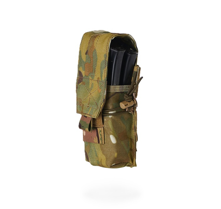 Подсумок для магазинов М4/АК с регулируемым клапаном является универсальным подсумком закрытого типа. Утягивающая круглая резинка и регулируемый клапан дают подсумку его главное свойство - универсальность.