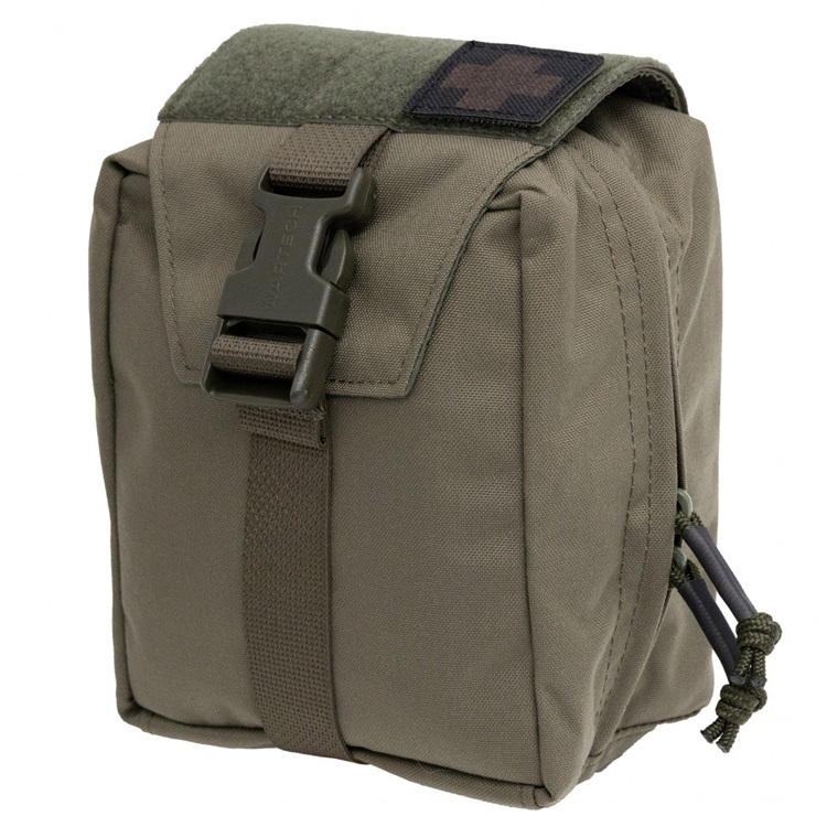 - На внешней части аптечки закреплена медицинская нашивка на велкро, что упрощает визуальную идентификацию назначения подсумка.