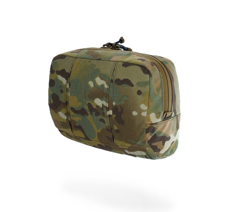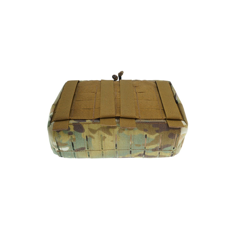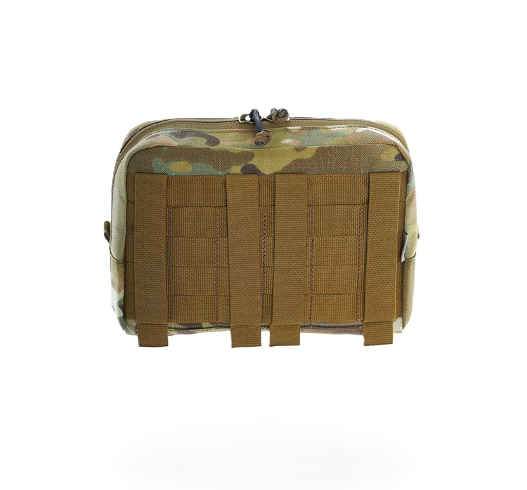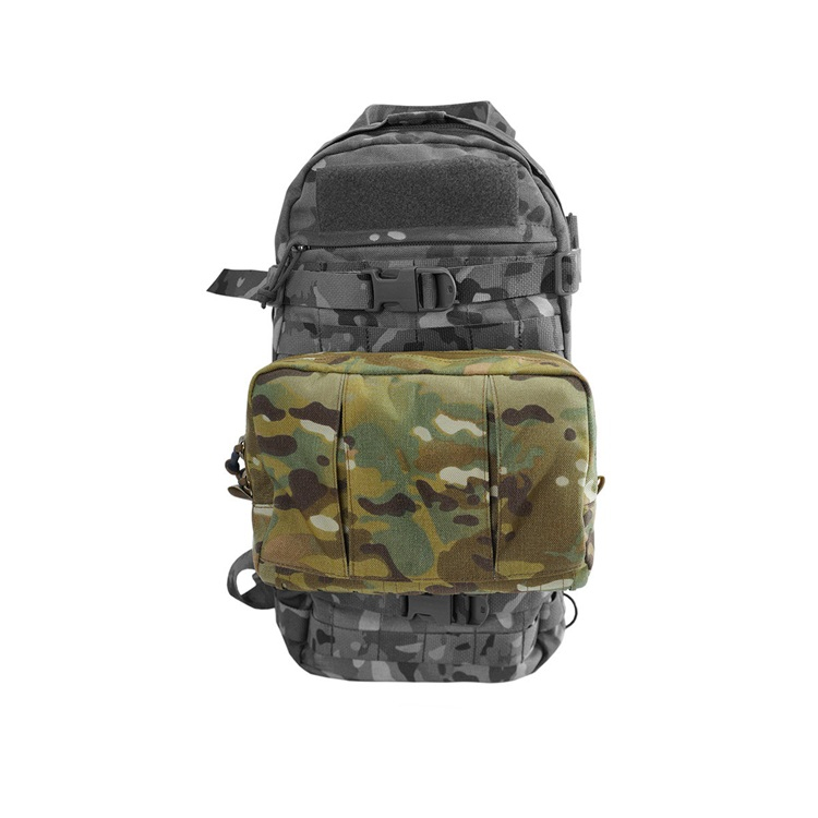 Для более удобного открывания подсумка и извлечения из него содержимого, молния с его боков, размещена под углом. Так же на дне размещена панель Molle Minus, для крепления навесного снаряжения, например, турникета/жгута, либо другого негабаритного подсумка. Внутри подсумок оборудован плоской эластичной лентой для дополнительно фиксации вещей внутри него.