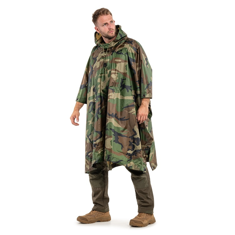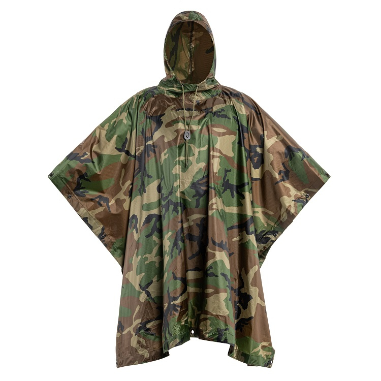 Пончо из 100% полиэстера с плетением Rip-Stop, отличающееся прочностью на разрыв и водостойкостью, обеспечит защиту даже от сильного дождя.