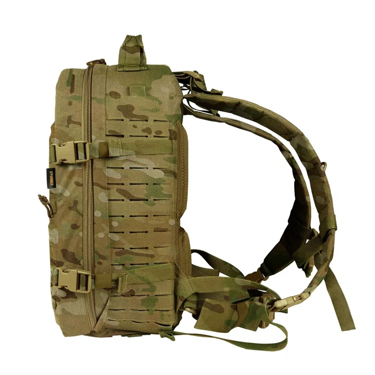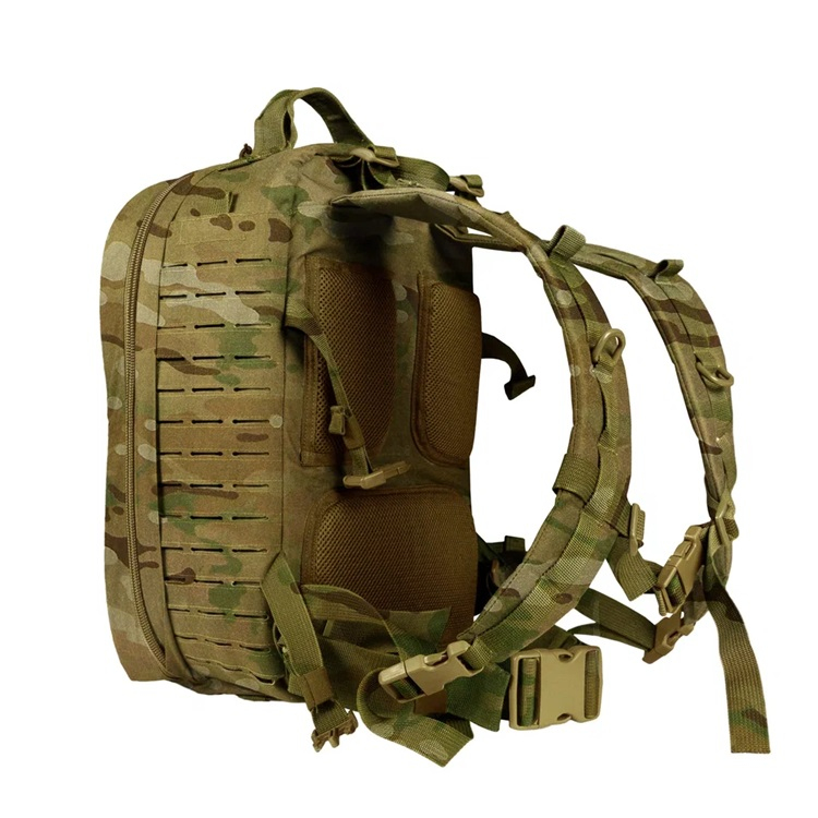 MOLLE / PALS интерфейс внешней панели рюкзака выполнен по технологии лазерной резки и позволяет размещать дополнительные подсумки и снаряжение.