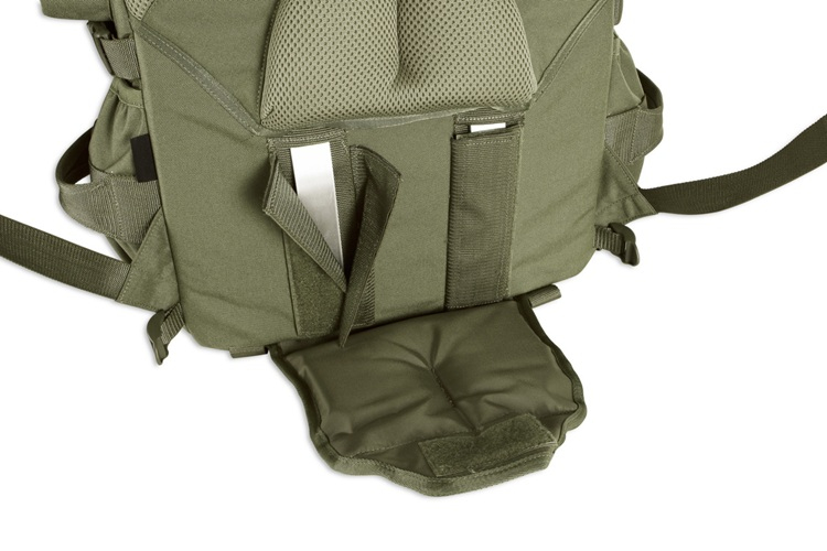 Его фронтальная часть оборудована стропами MOLLE для крепления подсумков и другого оборудования.