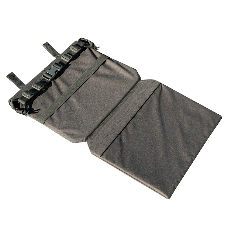 Двухсекционное сидение-пятиточечник Sturmer Folder для размещения одного или двух баллистических пакетов, защищающих поясницу, таз и ноги от осколков. Сидушка может быть закреплена тремя способами, на MOLLE платформу бронежилета или пояса, а также как классическая сидушка с помощью поясной стропы, в этом случае ее можно будет повернуть вперед и использовать как малый коврик для засады, либо подложить под спину для короткого отдыха. Базовая комплектация подразумевает две вставки из изолона, который обеспечивает комфорт и теплоизоляцию, а так же один баллистический пакет класса защиты БР1 в верхней секции.