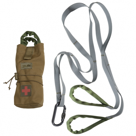 При ранении на поле боя иногда появляется потребность эвакуировать раненого товарища из под обстрела для оказания доврачебной помощи. Наша система позволяет вытащить бойца несколькими способами. Зацепив стропы карабином за жилет, продев стропы под руки, сделав петлю вокруг туловища и другими способами. На стропе две удобные ручки для возможности тащить вдвоем или одному, двумя руками или зацепив за страховочный ремень или одной рукой и за ремень. Множество вариантов использования легко извлекается, крепится на MOLLE в любом положении. Альпинистский карабин в комплекте.