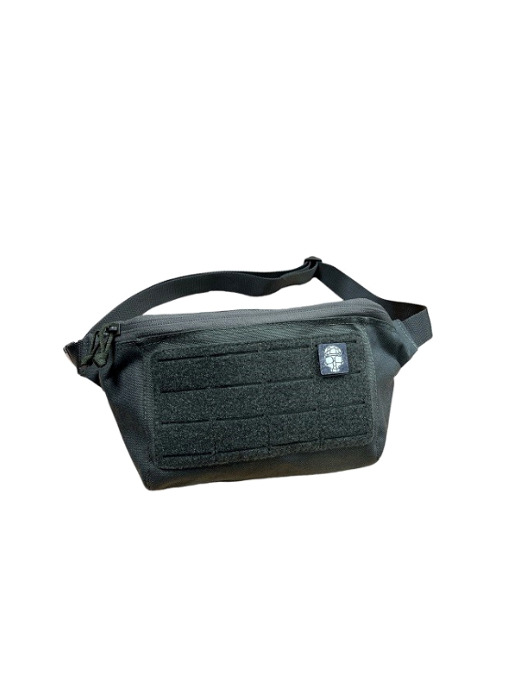 На фронтальной стороне панель с лазерным molle-велкро. Лазерный molle означает, что на поверхность сумки установлена цельная панель, в которой есть прорези для molle-совместимых подсумков.