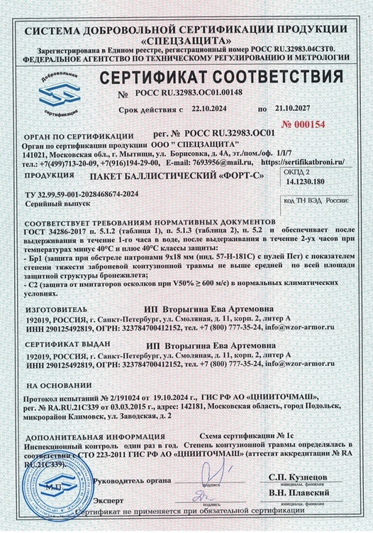 ВНИМАНИЕ! В комплект  входят баллистические пакеты!